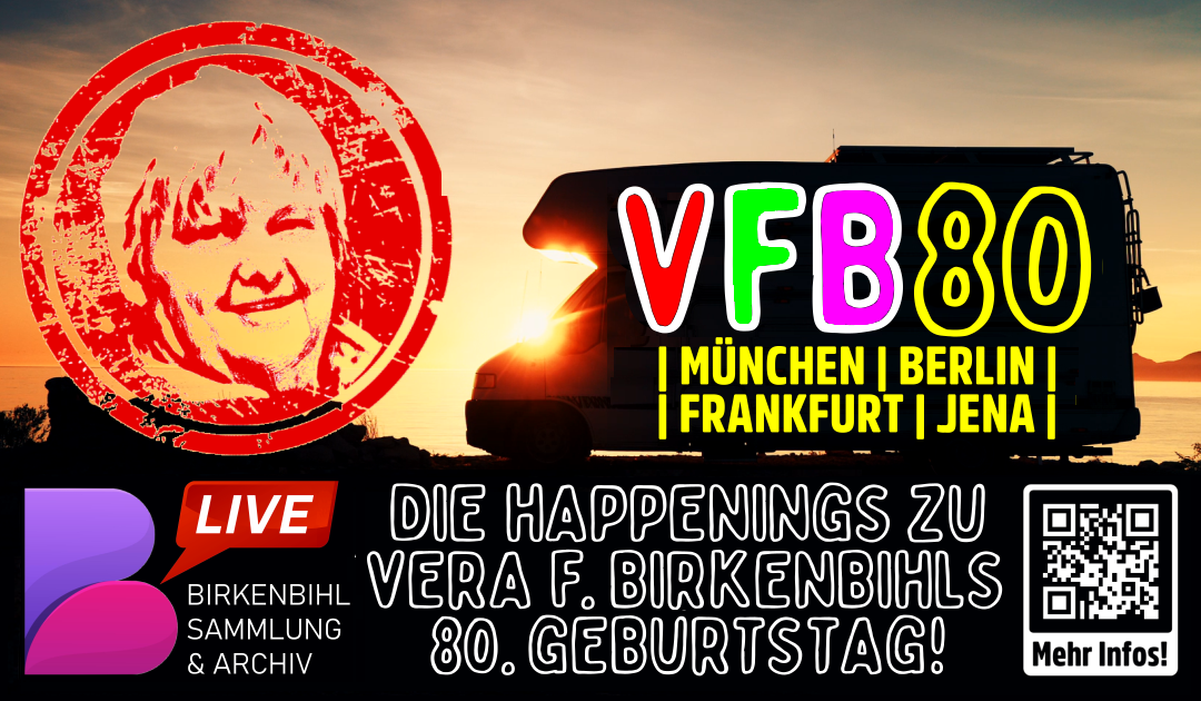 Am 26. April 2026 hätte Vera F. Birkenbihl ihren 80. Geburtstag feiern können, wenn sie nicht bereits Ende 2011 verstorben wäre – somit fällt auch ihr 15. Todestag in das Jahr 2026. Grund genug für BIRKENBIHL SAMMLUNG & ARCHIV in Kooperation mit verschiedenen Partnern unter dem Motto „VFB 80“ mehrere Happening-Events mit VFB-bezogenen Seminar-Veranstaltungen zu planen, die Anfang 2026 beginnend, über das Jahr 2027 bis in den Sommer 2028 stattfinden sollen.